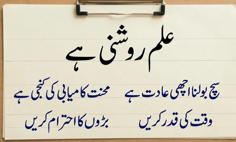 ابتدائی عمر میں بچے الفاظ کو صرف پڑھتے نہیں بلکہ ان کی شکل، ترتیب اور انداز کے ذریعے بھی سیکھتے ہیں، اسی لیے بچوں کے تعلیمی جملے اردو میں جب صاف اور متوازن انداز میں پیش کیے جائیں تو ان کا اثر زیادہ گہرا ہوتا ہے۔ یہی وجہ ہے کہ Urdu Calligraphy for Kids میں سادگی، وضاحت اور دوستانہ انداز کو بنیادی اہمیت دی جاتی ہے۔